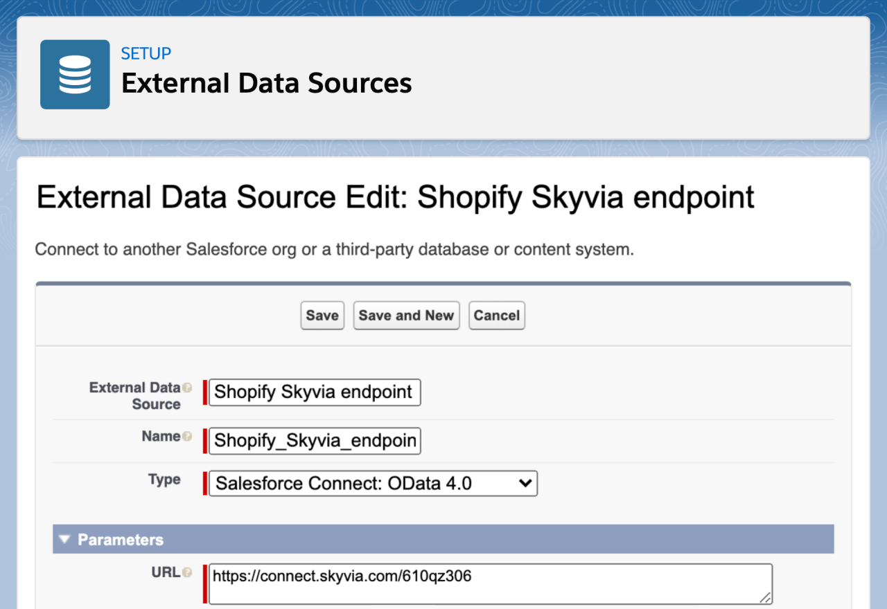 Skyvia Connect provides both read and write data access via OData protocol to a number of cloud CRMs, accounting, marketing, e-commerce and other applications, and such databases as SQL Server and SQL Azure, MySQL, PostgreSQL. Thus, using Skyvia Connect and Salesforce Connect together you can integrate your cloud or database data into Salesforce with nearly no efforts! All the configuration is done in a convenient GUI and takes minutes instead of days required to implement a custom OData service for your data.